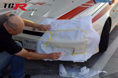 mea culpa, I was the one who nicked the bumper during a practice run, resulting in that horrendous tear. See the following photos as to how Russ fixed the repair (and yes, I paid for the materials out of my own pocket...)